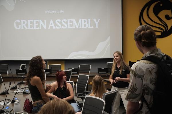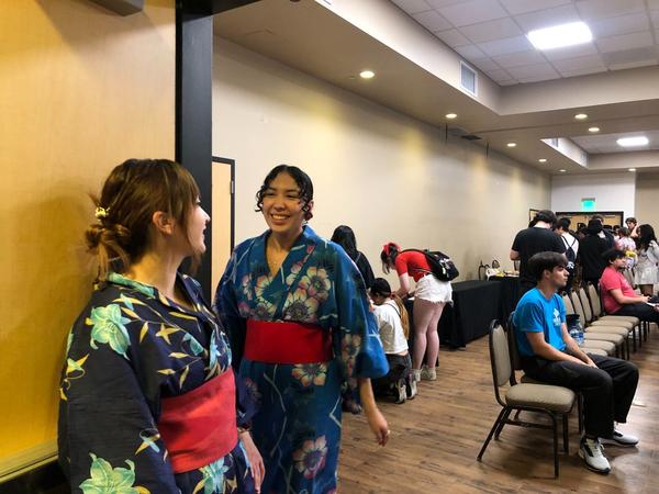 Aisa Uchimura, president of the Japanese Heritage Student Association, and Japanese program coordinator Yukari Nakamura-Deacon talk about the Japanese cultural club showcase on Friday evening. Performances from karaoke singers and the UCF Kendo club were just some of the activities during the event.