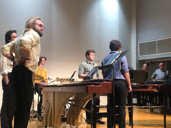 Director of the Percussion Ensemble, Thad Anderson talks about the importance of Gordon Stout as a percussionist, and Gordon Stout talks about his role in the music that was performed on Thursday night.